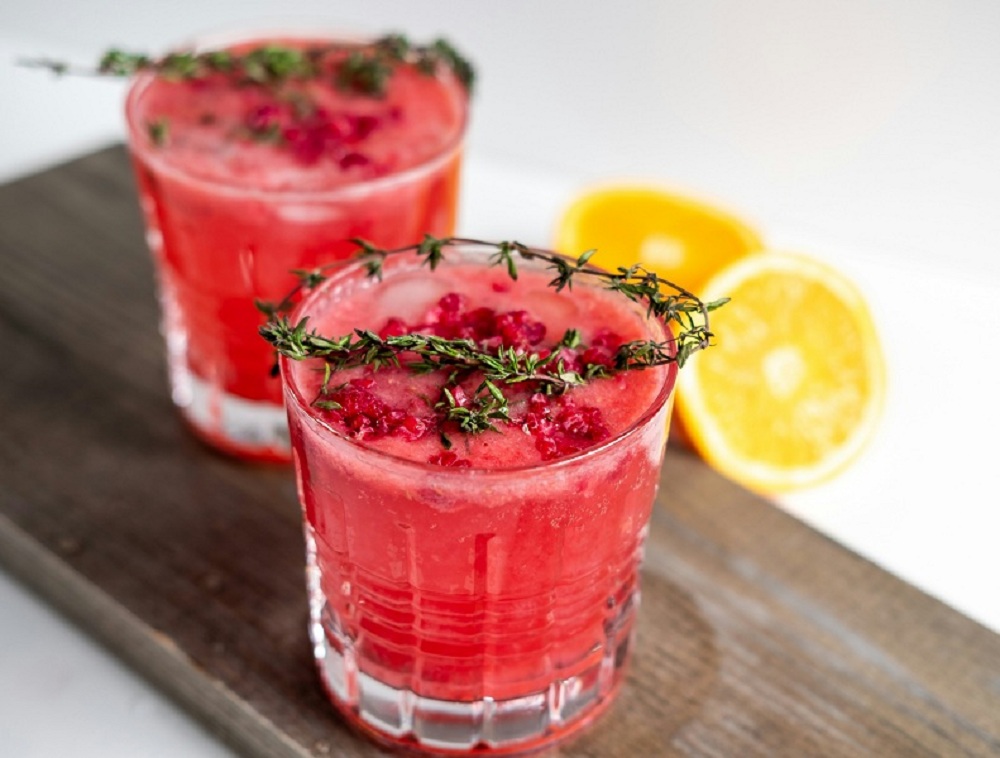 1. Licua o procesa el betabel hasta hacerlo líquido, luego añade el jugo de naranja y refrigera por un par de horas.