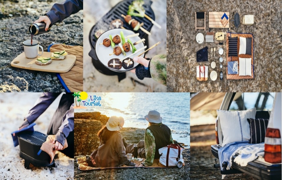 Los detalles elevan la experiencia: tablas de bambú, bowls para servir, una hielera con aislamiento eficiente y una bolsa versátil diseñada para llevar lo esencial en cualquier plan. Además, textiles como mantas y cojines aportan confort, mientras que una linterna LED portátil crea una atmósfera cálida al atardecer.