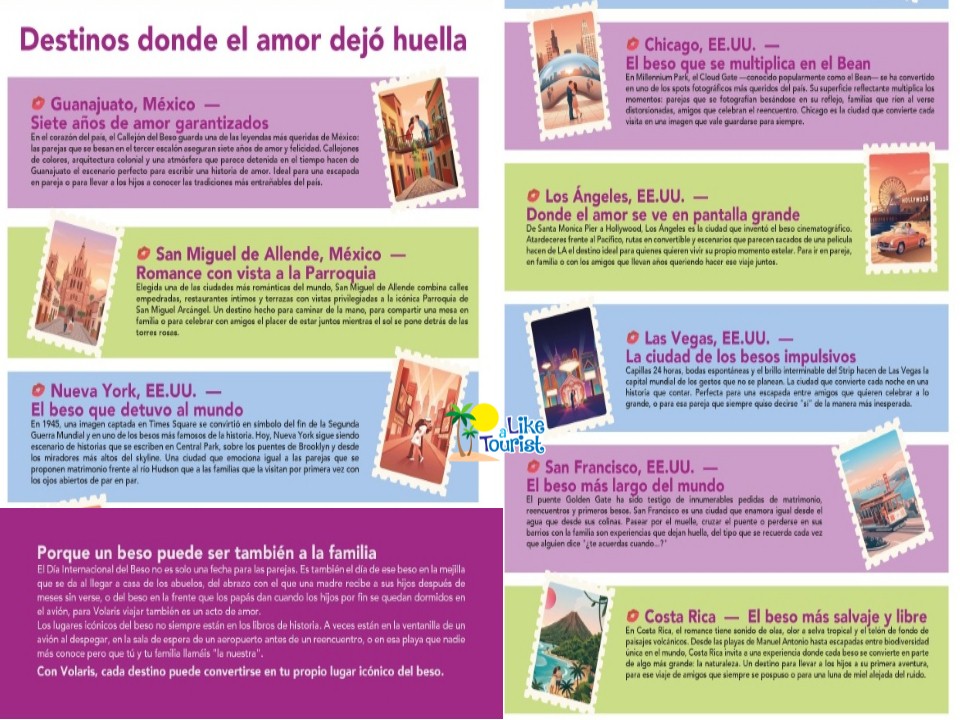 Es así que en el Día Internacional del Beso, Volaris celebró esa forma de conexión que trasciende con una invitación a celebrar el amor viajando a destinos donde los besos tienen nombre, historia y leyenda propia a descubrir destinos románticos, icónicos y llenos de experiencias en México, Estados Unidos y Centroamérica.